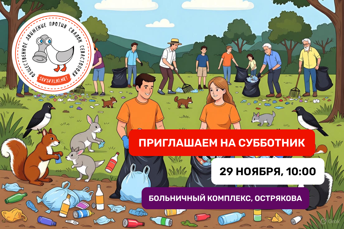 Общественное движение Севсвалки приглашает всех желающих на 158-й субботник. 29 ноября с 10:00 мы будем приводить в порядок территорию у Больничного комплекса (Детский комплекс на Острякова).